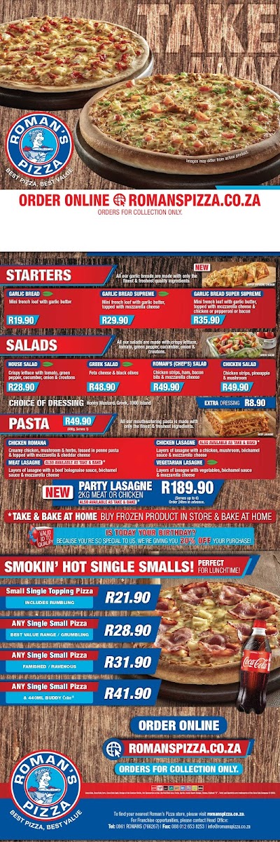 With an enticing array of options, Roman's Pizza Kimberley Horseshoe promises a delightful journey for your taste buds. Whether you're a pizza aficionado or a casual diner, this restaurant is sure to impress.